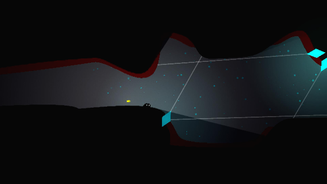 동굴은 한 치 앞도 보이지 않을 정도로 어두워서, 반딧불이 맴도는 플레이어 주위만 간신히 구분할 수 있습니다. 슬라임(또는 먼지 덩어리 같은) 플레이어는 벽에 붙어 이동할 수 있는 장기가 있으며, 게임을 진행함에 따라 기본 점프 외에 다양한 능력을 얻게 됩니다.