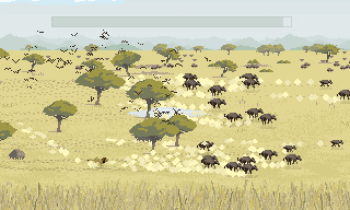 사자가 물소를 사냥하는 단순 명쾌한 아케이드 게임.